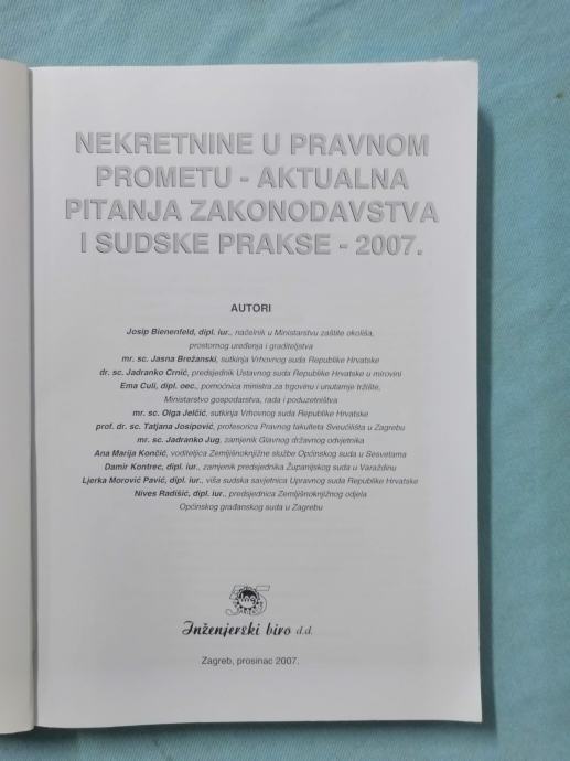 Nekretnine u pravnom prometu – aktualna pitanja zakonodavstva i sudske prakse – 2007.