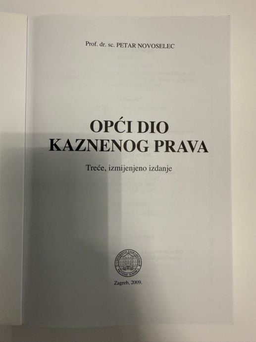 Opći dio kaznenog prava - Petar Novoselec (Treće izmijenjeno izdanje, Zagreb 2009.)