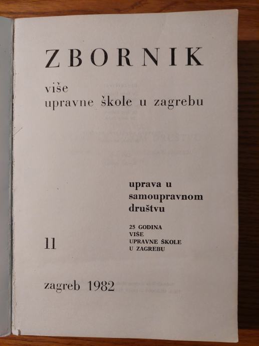 - Izdavač : Viša upravna škola , Zagreb , 1982.