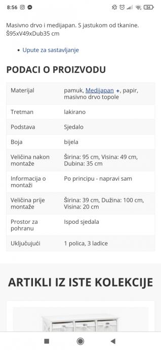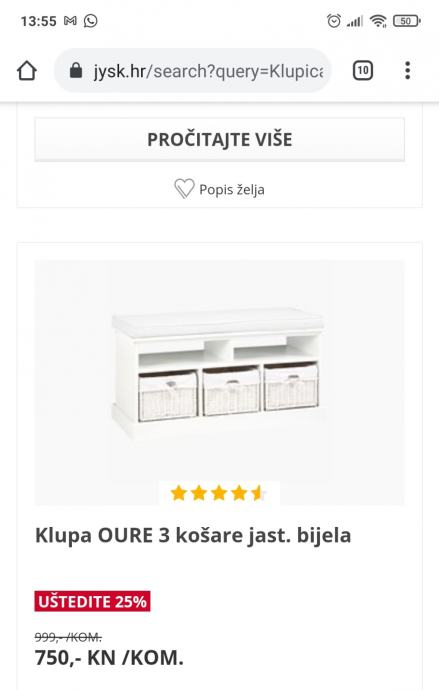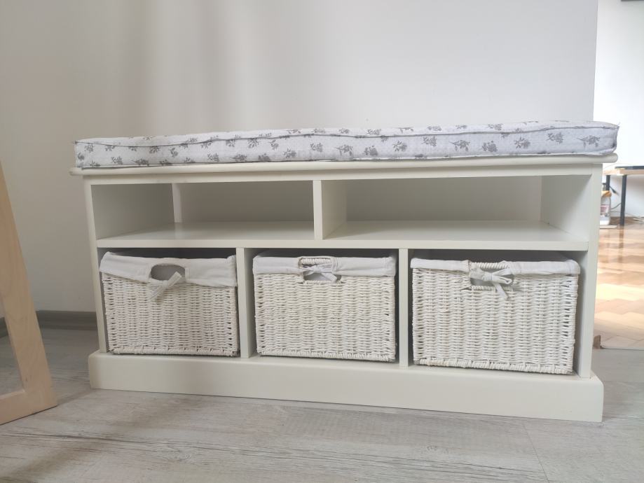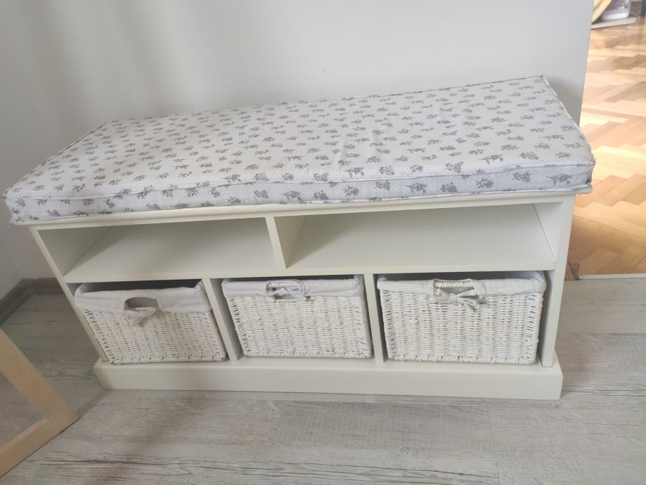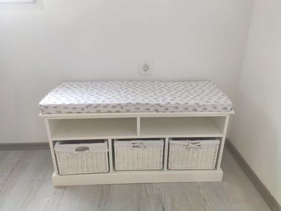 Bijela klupica za predsoblje kupljena u JYSK-u.