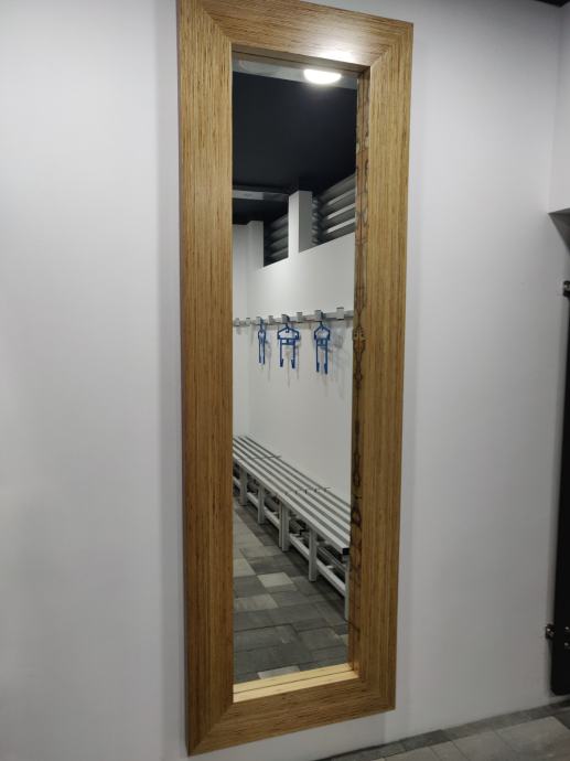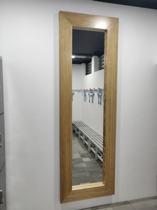 Veliko "custom made" masivno ogledalo sa okvirom od punog drveta odnosno multiplex ploče debljine 6cm. Novo, nerabljeno.