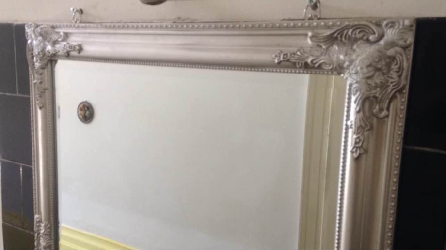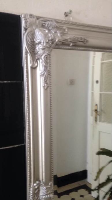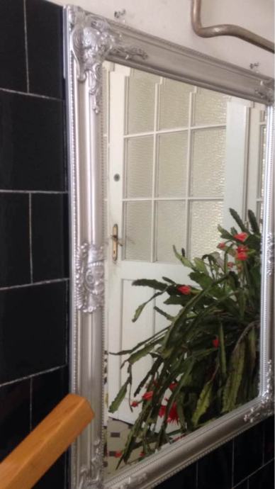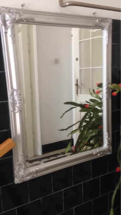 Lijepo veliko ogledalo 70 cm x 90 cm u bogatoj srebrnoj Rami sa reljefnim detaljima.