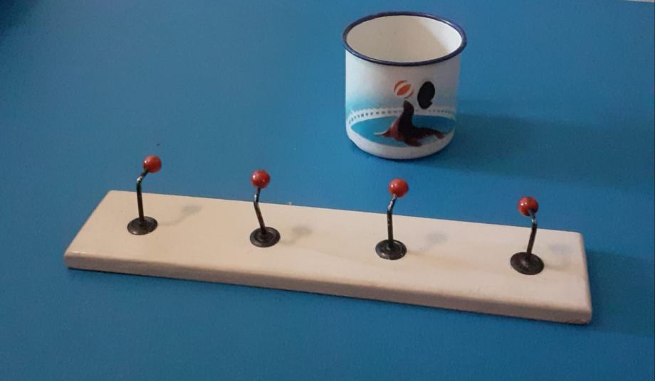Prodajemo retro vješalicu i lončić stari preko 40 godina. Jako dobro očuvano i upotrebljivo. Vješalicu i lončić naplaćujemo 15 kn.