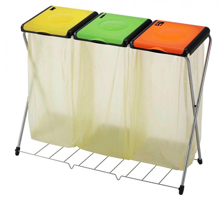 Držač tri vreće za smeće je inovativan i praktičan, te zahvaljujući svojim držačima, vreće su uvijek otvorene za bacanje i sortiranje raznog otpada. Držač posjeduje poklopac i time sprječava širenje neugodnih mirisa. Izrađen je od kvalitetnog galvaniziranog čelika, te je pogodan za unutarnju i vanjsku upotrebu.