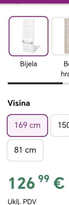 Ukupna veličina: 59 x 17 x 169 cm (D x Š x V)