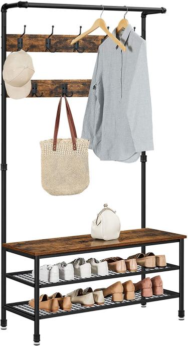 Robusne metalne cijevi s izgledom vodovodne cijevi i rustikalna iverica daju ovoj klupi za cipele visoku otpornost i stabilnost, tako da čak i odrasle osobe (do 100 kg) mogu bez problema sjesti na nju. Dizajniran u trendovskom industrijskom dizajnu i opremljen elementima vodovodnih cijevi i rustikalnim, drvenim elementima, ormar je posebno prikladan za velike ili otvorene prostorije koje još nisu pretrpane drugim namještajem. Postavite stalak za odjeću u svom hodniku, na primjer, da objesite jakne i kapute i da možete lako obući cipele. Za sve informacije nazovite na broj telefona 092/399-75-19