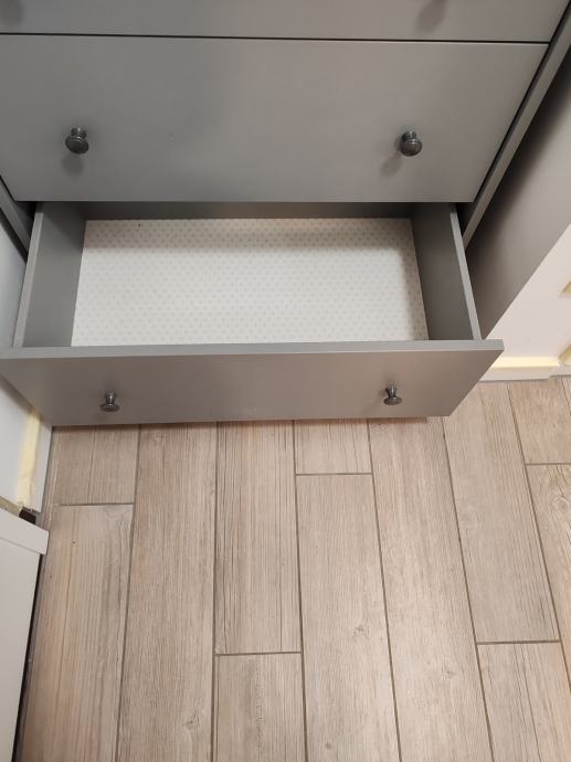 Novo, bez greške, dobili na poklon, ne sviđa nam se. Moze se otpremiti već sastavljen. 3 ladice za ključeve i cipele, dvije plohe za torbe i sl. , vješalica za jakne.