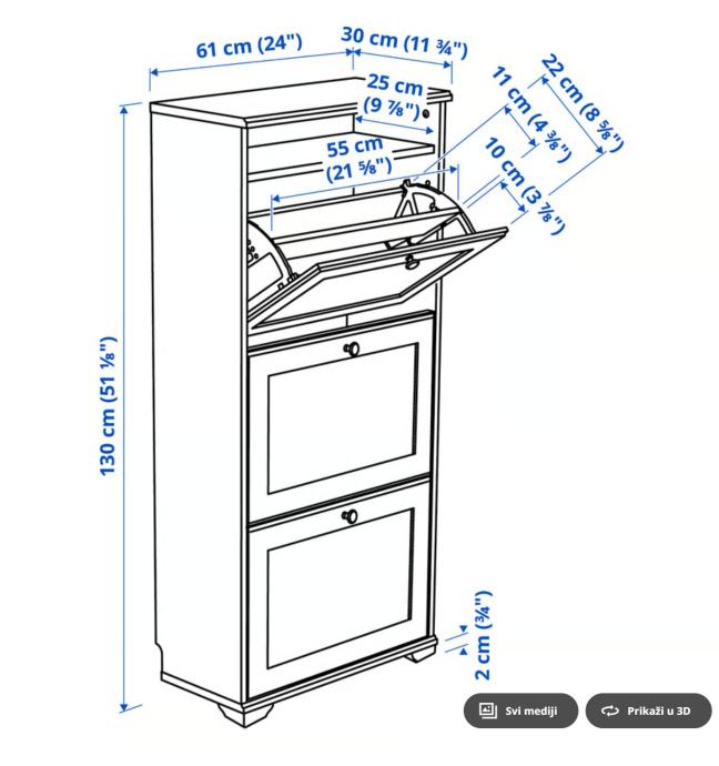Prodajem ormarić za cipele IKEA. Nema ogrebotina ili udarenih dijelova, na gornjoj dasci tragovi korištenja. Novi je 80€ prodajem za 20.