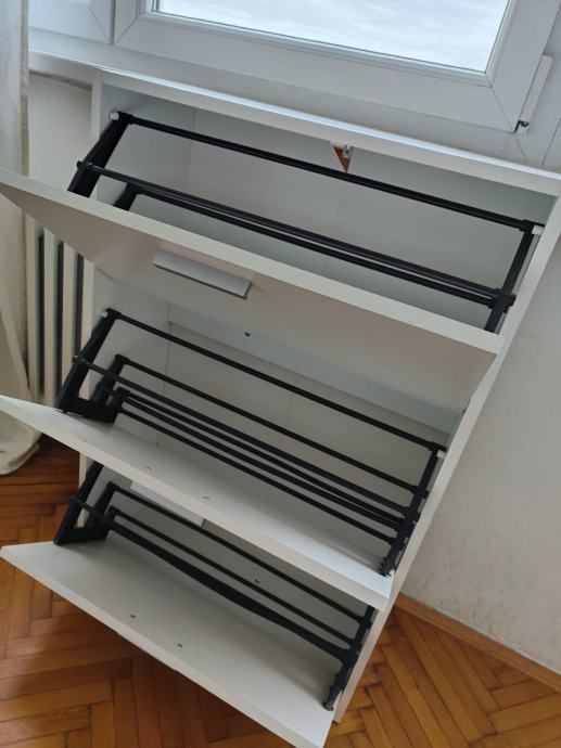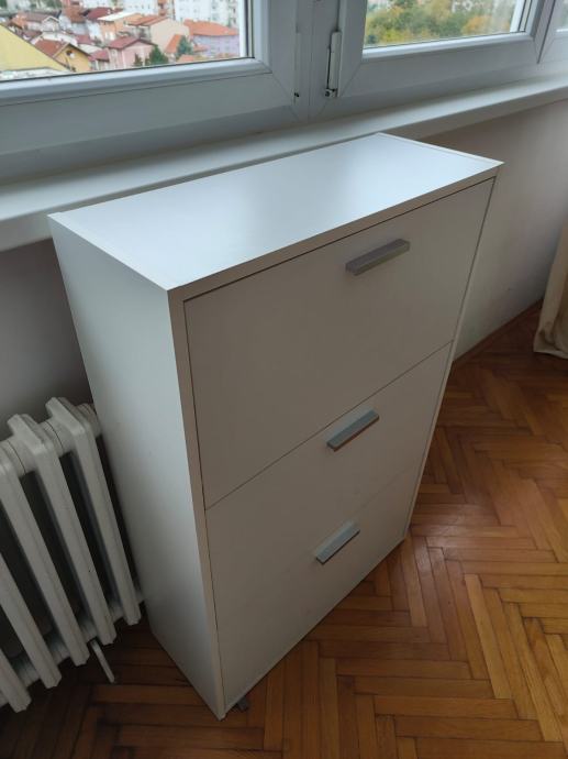 Prodajem Ormar za cipele s 3 odjeljka kupljen u Jysku. Razlog prodaje je kupnja novog ormarica koji bolje odgovara dimenzijama prostora nakon razmjestaja.