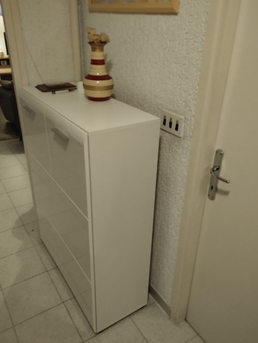 Prodajem ormar za obuću Merano kupljen u ožujku ove godine,jednom montiran prava cijena sa računom 200 €, razmontiran i u kutiji, drvni materijal,alpin bijela,upute za montažu nalaze se u kutiji,cijena nije fiksna.