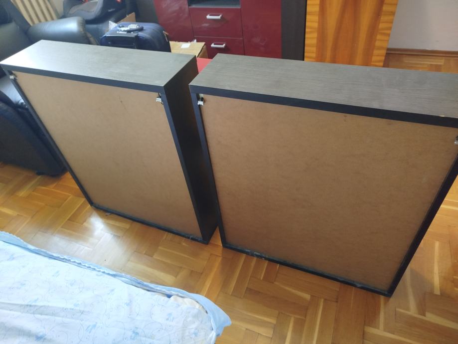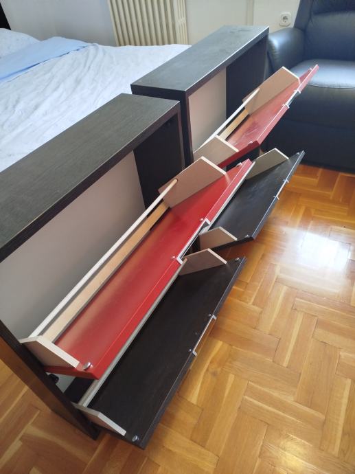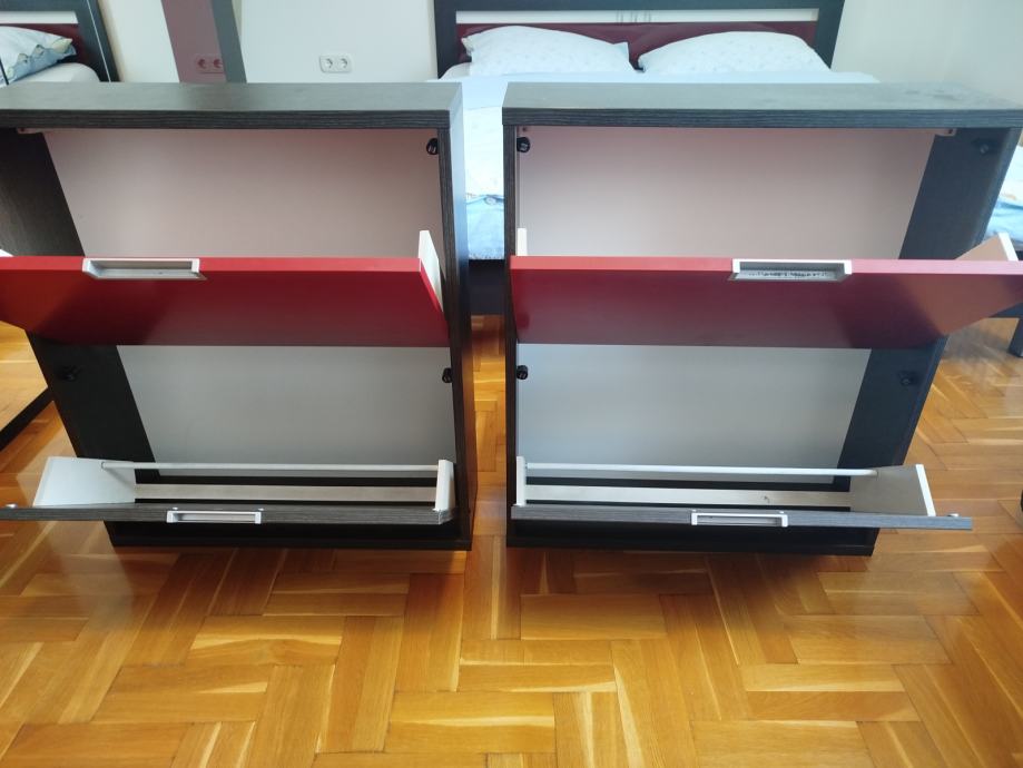 Crveno smeđi ormarići za cipele, kupljeni u Meblu