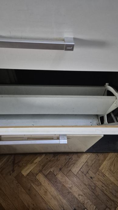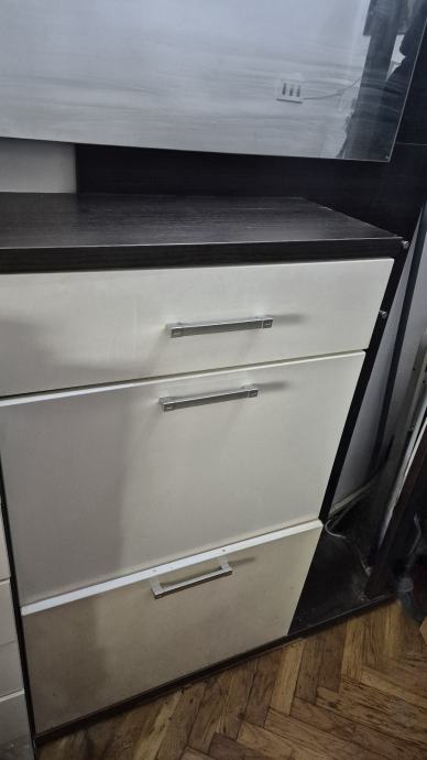 Dva pretinca za cipele svaki s dva reda, u prosijeku stane 16 pari obuće. Velika ladica iznad, ogledalo i vješalice.