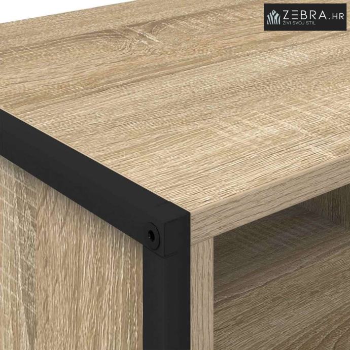 Materijal od konstruiranog drva Ormar je napravljen od kvalitetnog konstruiranog drva, što mu daje čvrstu i stabilnu strukturu. Ovaj materijal je izabran zbog svoje trajnosti i estetike, pa je lako održiv. Stražnji deo, okvir i gornja površina od konstruiranog drva jamče dugoročno korišćenje, savršeno za unutarnje prostore.