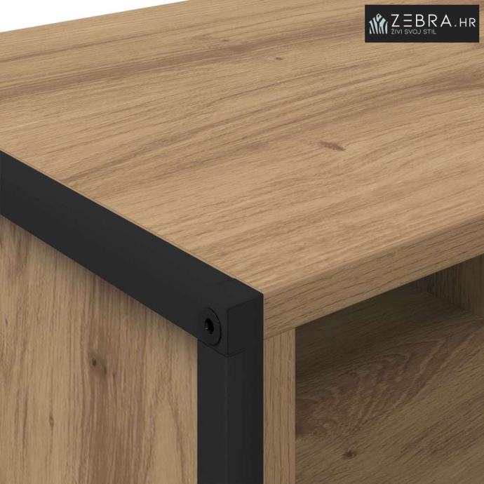 Materijal od konstruiranog drva Ormar je napravljen od kvalitetnog konstruiranog drva, što mu daje čvrstu i stabilnu strukturu. Ovaj materijal je izabran zbog svoje trajnosti i estetike, pa je lako održiv. Stražnji deo, okvir i gornja površina od konstruiranog drva jamče dugoročno korišćenje, savršeno za unutarnje prostore.