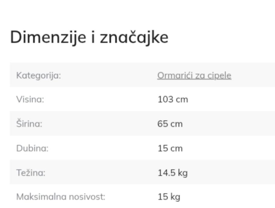 *NOVO*Ormarić za cipele dimenzije 103×65×15