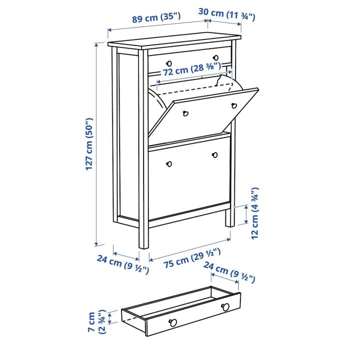 Ikea Hemnes, element za obuću, 2 odjeljka, bijela, 89x30x127 cm