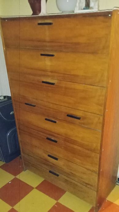 Ormarić ima 7 zatvorenih polica i jednu veliku ladicu . Rabljen je, ali je u dobrom stanju.