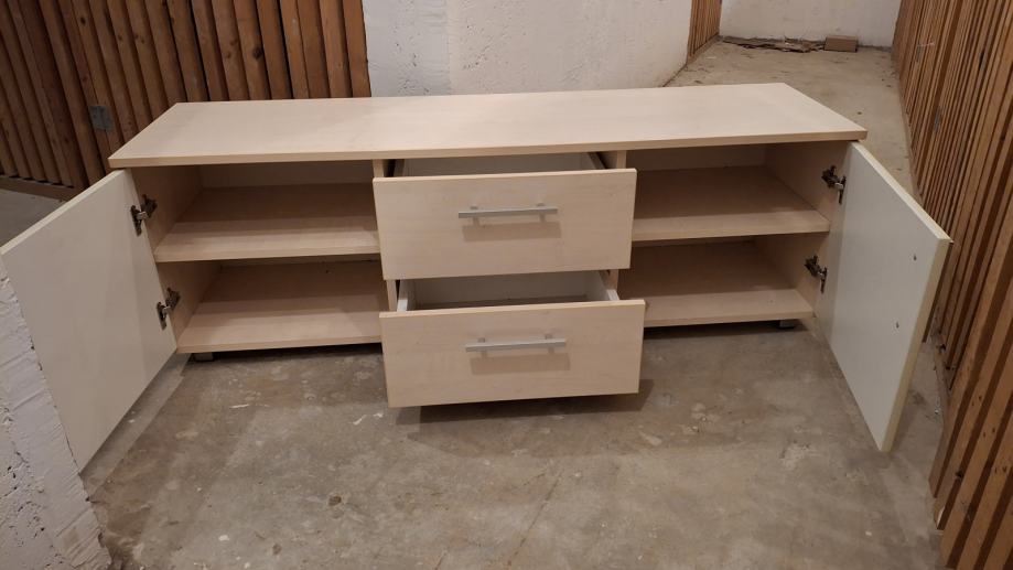 Prodajem kvalitetnu komodu, ručno rađenu, može poslužiti kao ormarić za predsoblje (za obuću i još poneku sitnicu) ili kao stalak za TV. Širina je 150 cm, dubina 41 cm i visina 53 cm.