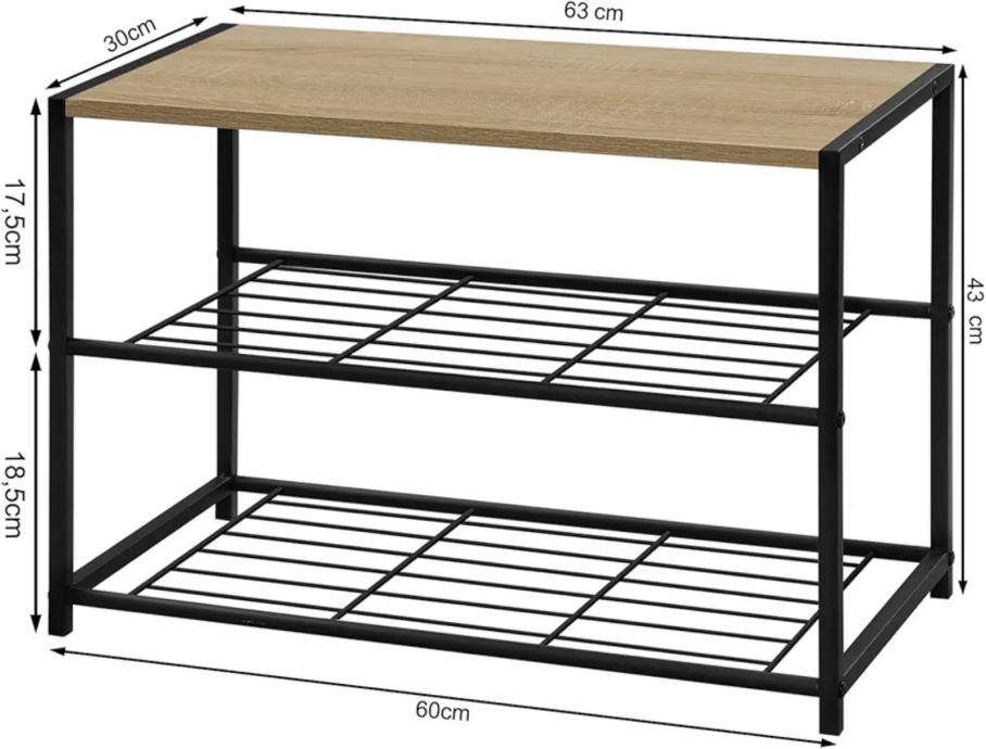 Uštedite prostor: 63x30x42cm (Š x D x V); Visina svake razine: 19cm, za do otprilike 3 para cipela po razini