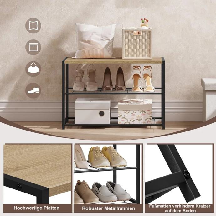 Klupa za cipele sa sjedalom: s drvenim sjedalom, lako možete presvući cipele. Nosivost po etaži 5 kg, klupa 20 kg