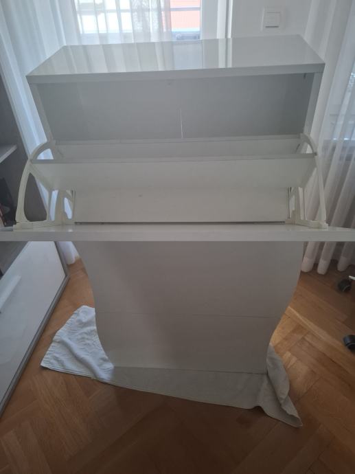 prodajem ormarić zidni za cipele (malo korišten, nigdje oštećen), bijeli, visoki sjaj, tri pretinca, ladica za cipele, dimenzije 66 x 27 x120 cm