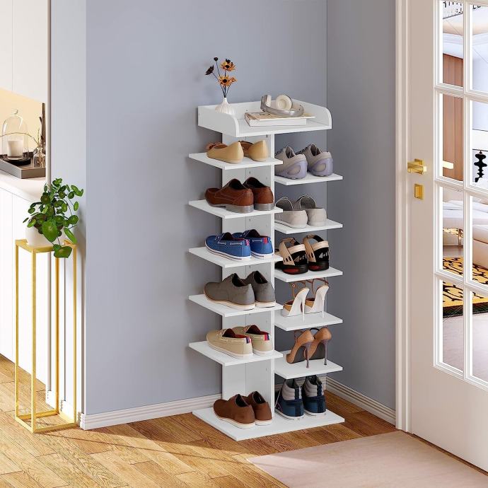 Vertikalni dizajn zauzima malo prostora u predsoblju, hodniku, spavaćoj sobi ili garderobi, omogućujući pohranu više pari cipela i lak pronalazak željenog para.