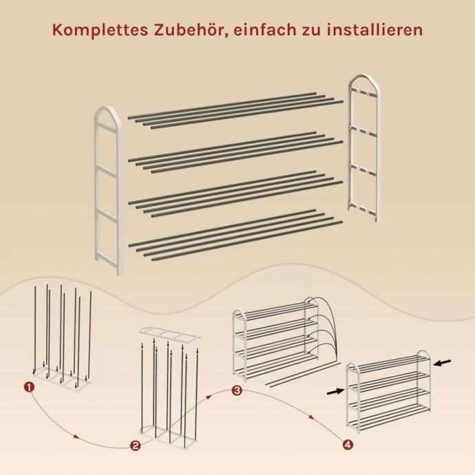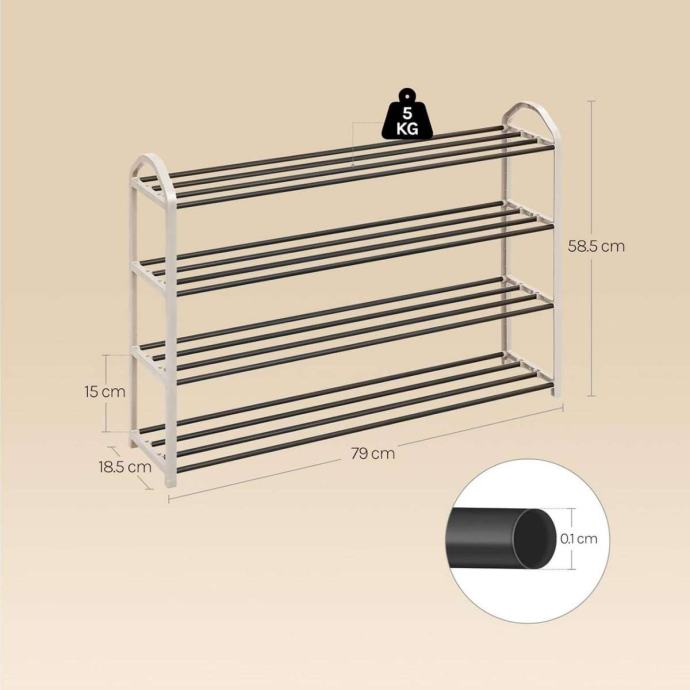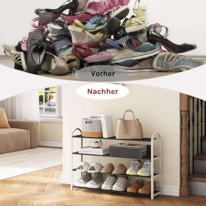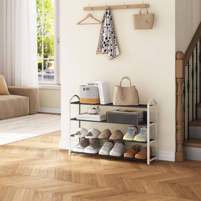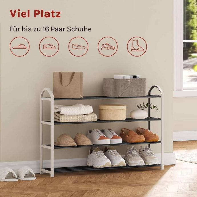 Ovaj stalak za cipele s četiri razine omogućuje urednu pohranu do 16 pari cipela ili drugih predmeta. Zahvaljujući višeslojnom dizajnu, štedi prostor i pomaže održati dom organiziranim i preglednim.