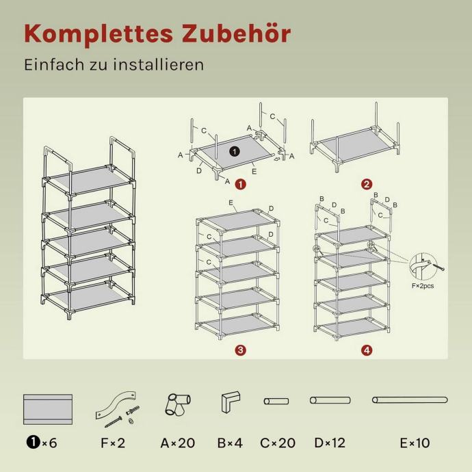 Sustav montaže na uklapanje omogućuje jednostavno i fleksibilno sastavljanje bez alata. Stalak se po potrebi može podijeliti u dvije manje jedinice, a jasne i ilustrirane upute osiguravaju brzo i lako sastavljanje uz minimalan napor.