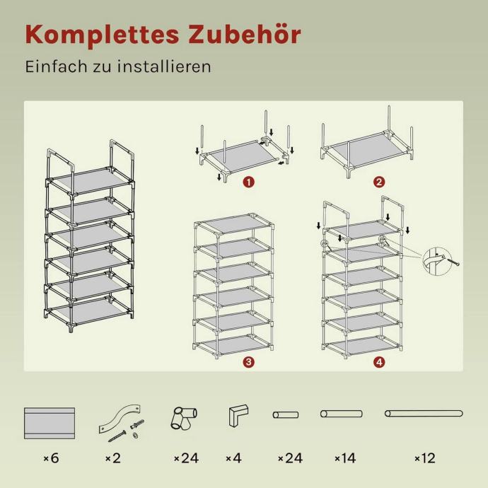 Sustav montaže na uklapanje omogućuje brzo i jednostavno sastavljanje bez potrebe za alatom. Stalak se po potrebi može podijeliti u dvije manje jedinice, a jasne i ilustrirane upute čine montažu brzom i bez napora.
