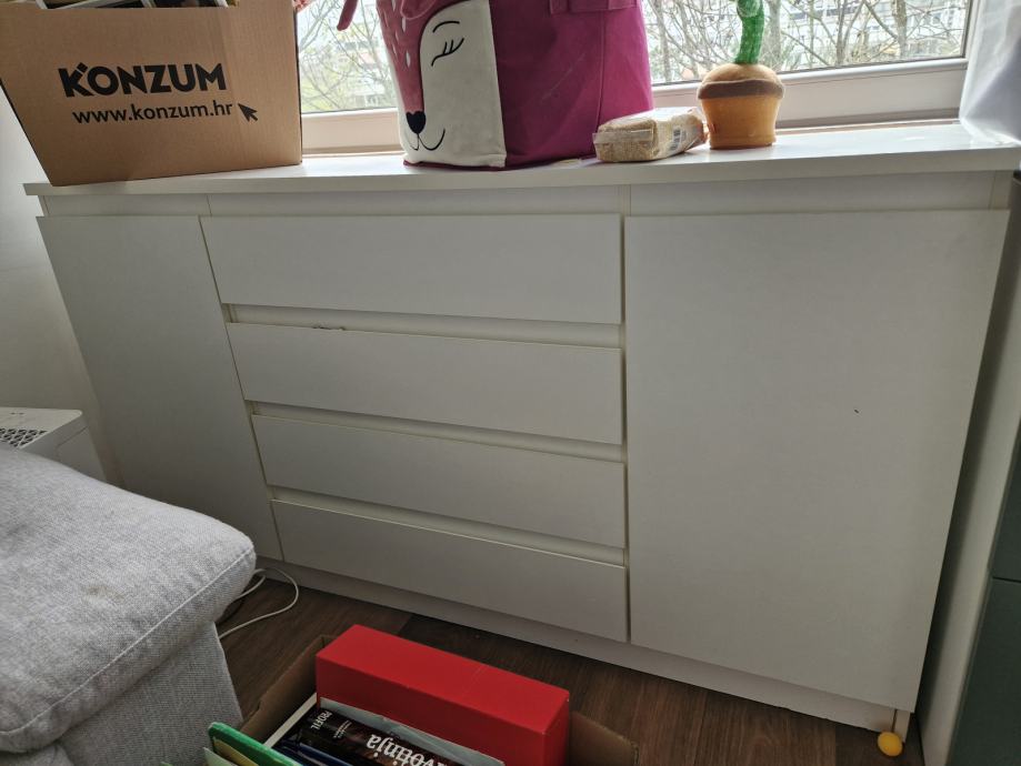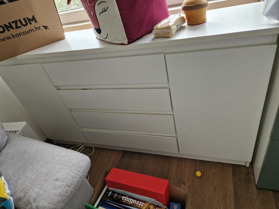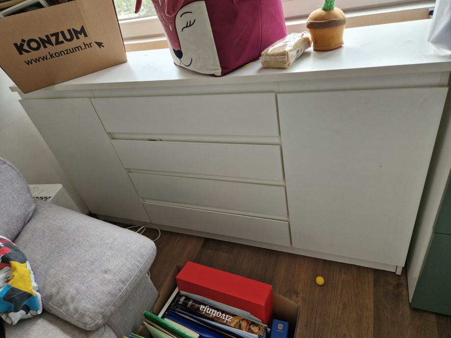 Korištena ali ocuvana bijela komoda. Nama je sluzila za namirnice a rekla bih da je vise za hodnik