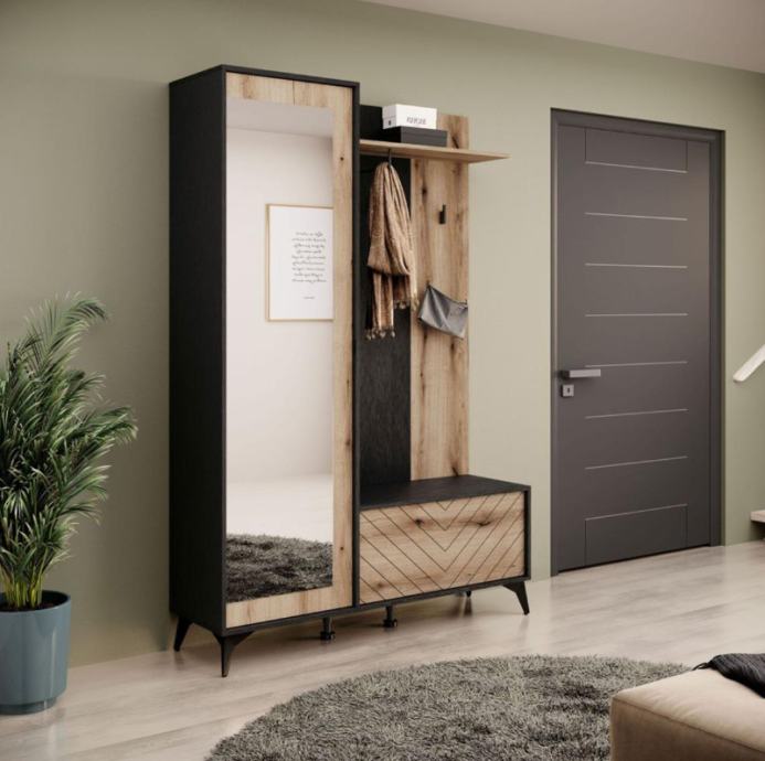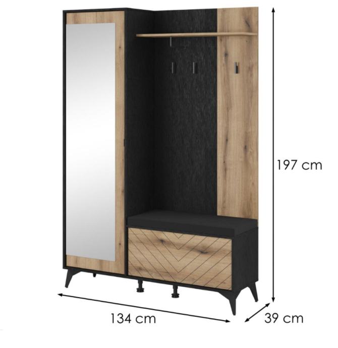 Diamond predsoblje 134 x 39 x 197 cm hrast evoke-crno, sastavljeno, očuvano.