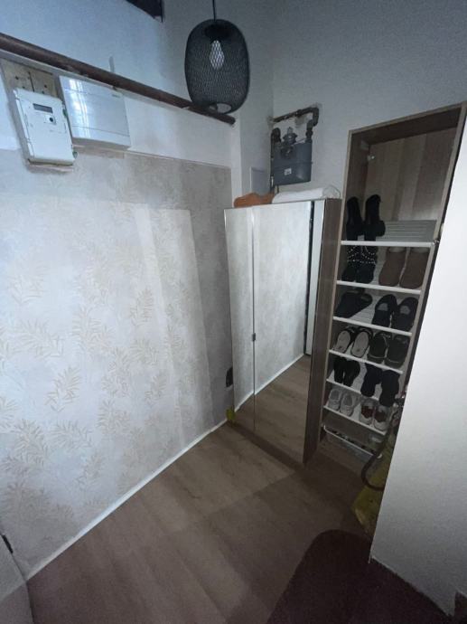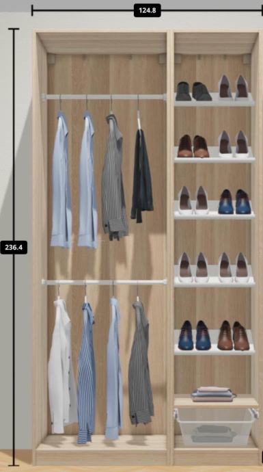 Prodajem IKEA Pax sustav za odlaganje. Star je manje od godinu dana. Sastoji se od korpusa širine 75cm, dubine 58cm i visine 201cm, u njemu su 2 šipke za odlaganje jakni te vrata od ogledala. I Drugi korpus širine 50cm, dubine 35 cm i visine 236cm bez vrata koji je služio za odlaganje obuće te se sastoji od polica za obuću, 1 košare i 1 police. Sve je u boji bajcanog hrasta, te se prodaje u kompletu po cijeni od 250 eura.