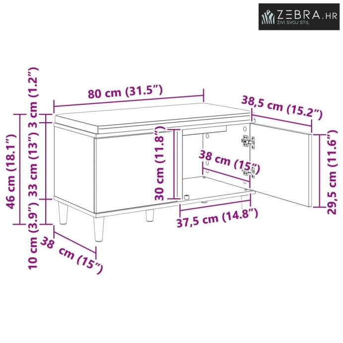 Sveukupne dimenzije: 80 x 38 x 46 cm (D x Š x V)