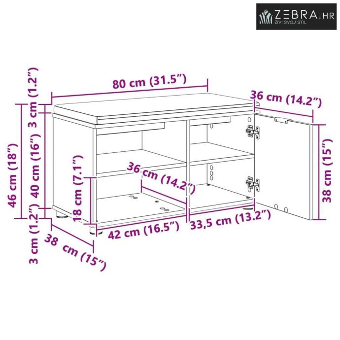 Sveukupne dimenzije: 80 x 38 x 46 cm (D x Š x V)
