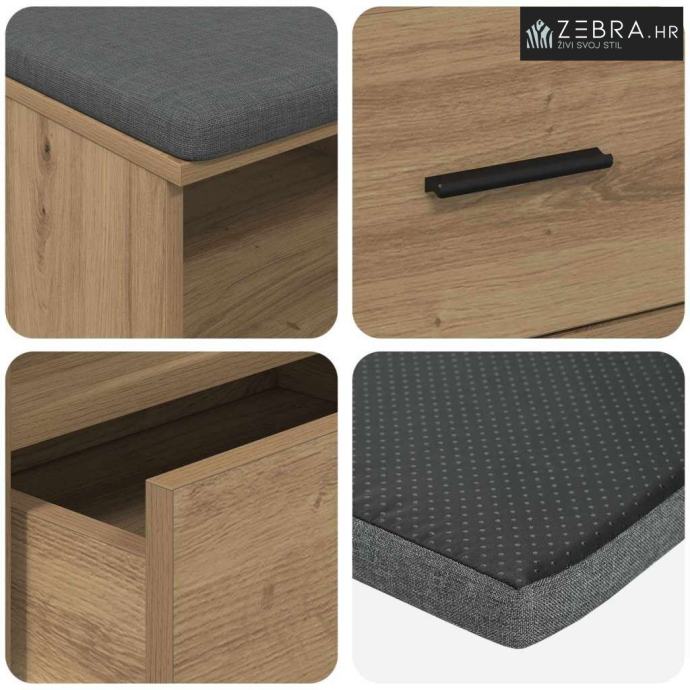 Praktična pohrana: S puno ugrađenog prostora, klupa pomaže održati hodnik urednim. Savršena je za cipele, torbe ili druge svakodnevne stvari, pogotovo u kućama s puno prometa.