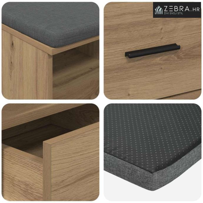 Praktična pohrana: S puno ugrađenog prostora, klupa pomaže održati hodnik urednim. Savršena je za cipele, torbe ili druge svakodnevne stvari, pogotovo u kućama s puno prometa.
