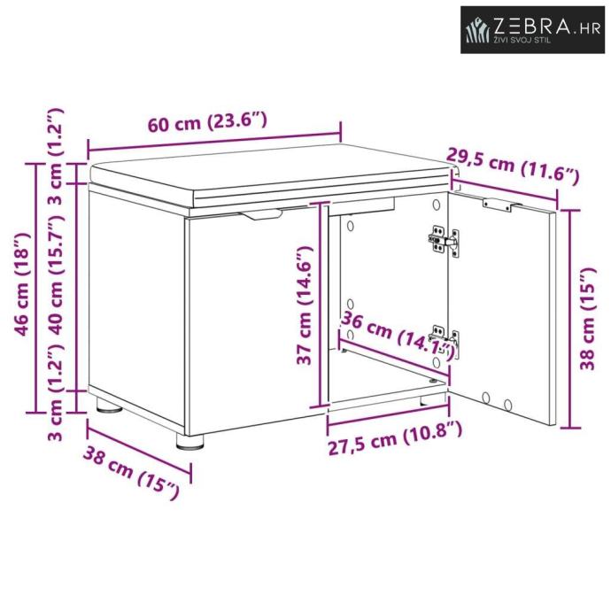 Sveukupne dimenzije: 60 x 38 x 46 cm (D x Š x V)