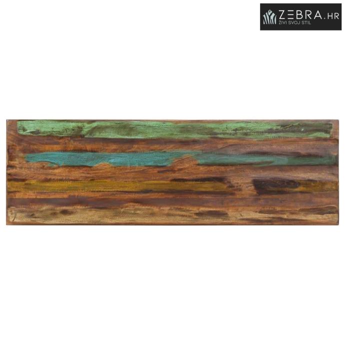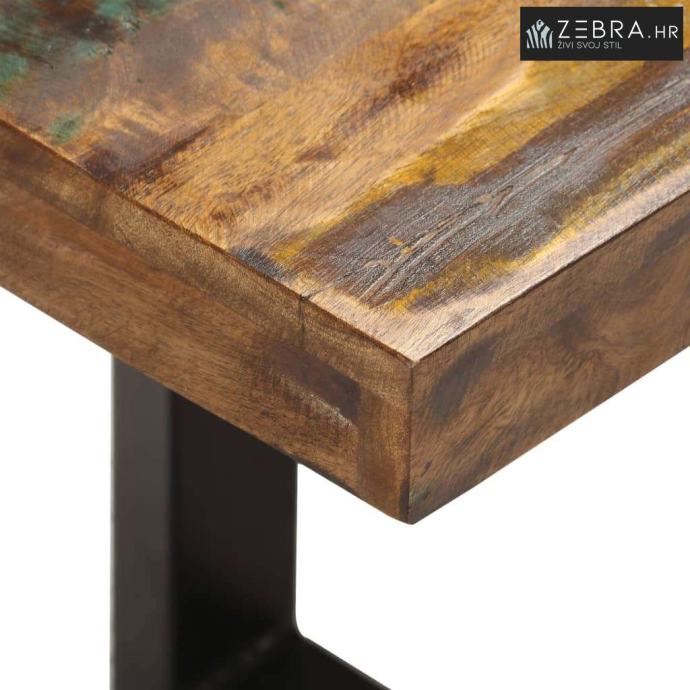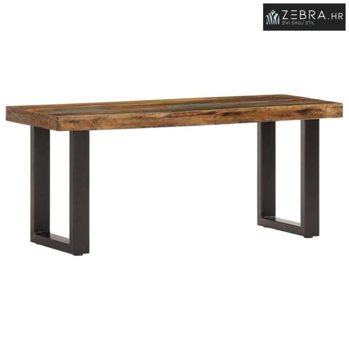 Površina klupe napravljena je od masivnog obnovljenog drva, dobivenog od greda, podova i potpornih greda iz srušenih starih zgrada. Uz to, može se sastojati od različitih vrsta drva, kao što su tikovina, tvrdo drvo, tropsko drvo, drvo manga itd. To znači da obnovljeno drvo zadržava karakteristike tih raznih vrsta drva. Obnovljeno drvo već je odležalo, oštećeno vremenom i osušeno, tako da se ne skuplja ili savija. Lijepi drveni godovi čine svaki komad namještaja prepoznatljivim i pomalo drukčijim od drugih. Noge od čelika obloženog prahom pridonose industrijskom stilu i čine klupu vrlo stabilnom. Ova klupa za hodnik lako se sastavlja.