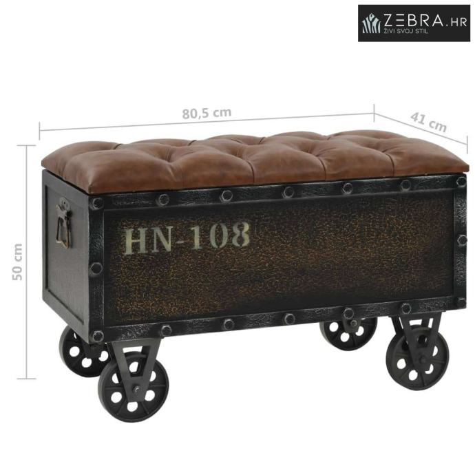 Udobna klupa napravljena je od masivne jelovine i MDF-a, a podstavljeno sjedalo presvučeno je umjetnom kožom. Ima dovoljno prostora za držanje mnoštva različitih predmeta izvan vidokruga, ali na dohvat ruke. Zahvaljujući izdržljivim ručkama i 4 kotačima, kutija za pohranu može se lako pomicati po vašoj prostoriji.