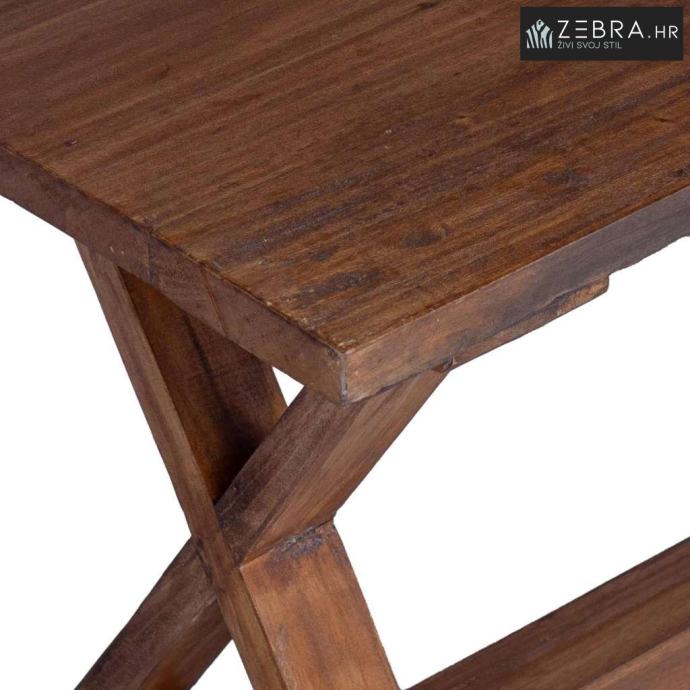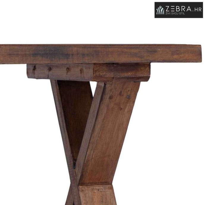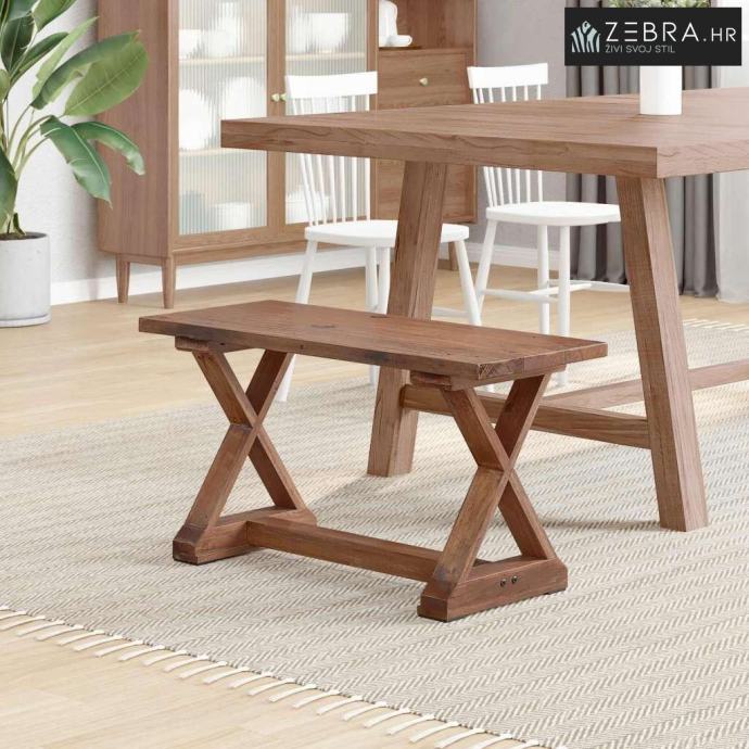 Industrijski dizajnerski elementi: Snažne križne noge izrađene od čvrstog obnovljenog drva, ova klupa spaja rustikalnu privlačnost i moderni izgled. Minimalistično dizajniran, naglašava praktičnost dok pruža stabilnost za svakodnevne i posebne prigode.