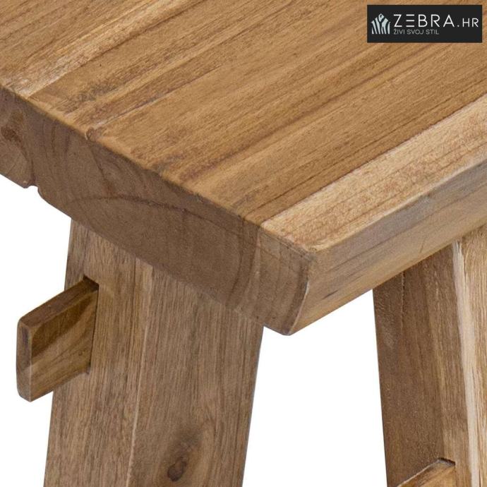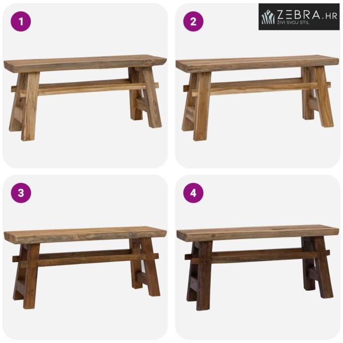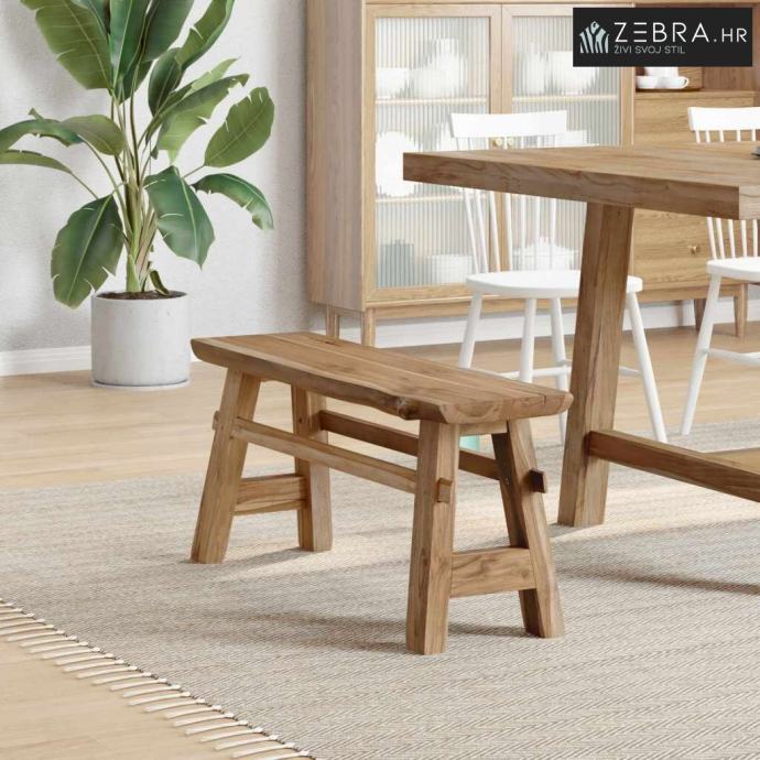 Autentična tikovina: Ova klupa, izrađena od masivne tikovine, donosi nevjerojatnu izdržljivost i prirodni šarm koji će se uklopiti u svaki prostor, unutarnji ili vanjski. Boje i teksture drva daju jedinstven vizualni efekt, donoseći toplinu i dubinu u svaki dekor.