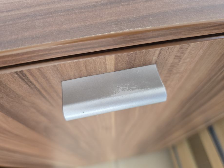 Očuvano, bez znatnih tragova korištenja osim na ručkicama ormarića za odlaganje koje su malo pohabane kao što se vidi na slici-mogu se zamijeniti.