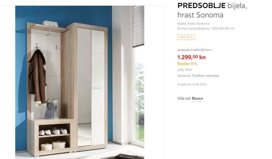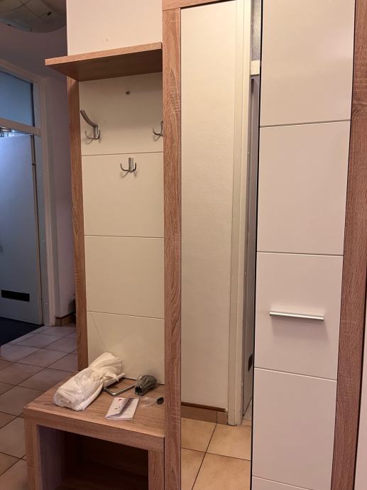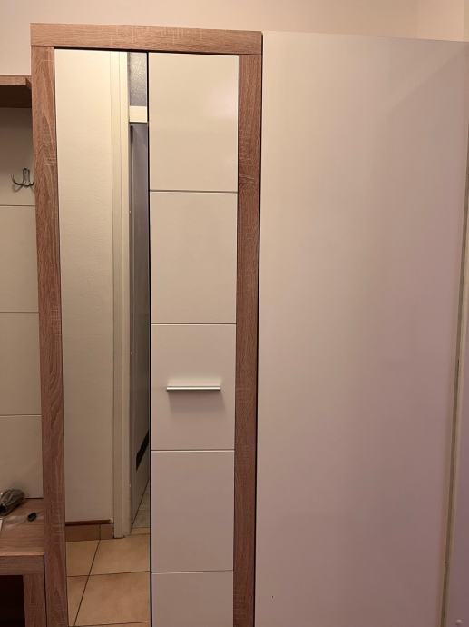 Prodaje se komplet za predsoblje, očuvan i kvalitetan, nedostaje polica u donjoj kutiji i ukrasna ‘rucica’ prema gornjoj polici pa je cijena smanjena