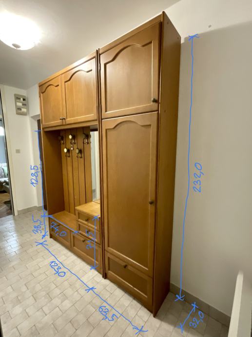 Prodaje se drveni ormar za predsoblje sa slike koji se sastoji iz dva dijela.