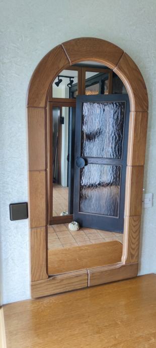 Ogledalo za hodnik od masivnog drveta, širine 60 cm, visine 120 cm.