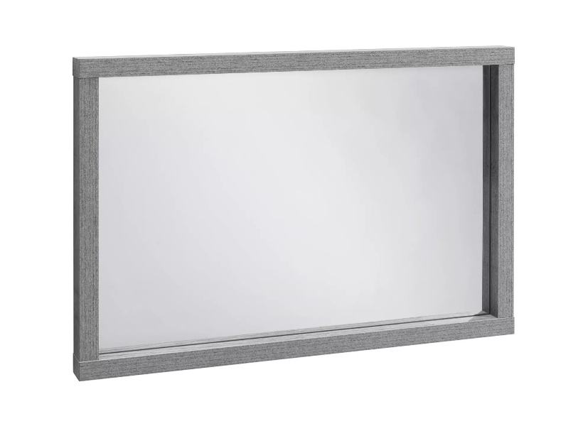 Izrađeno je od kvalitetnog zrcalnog stakla i drvenog okvira u sivoj boji.
