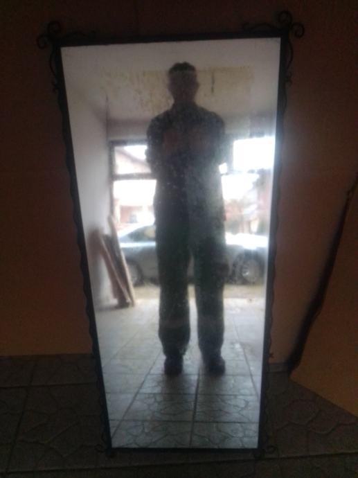 Ogledalo,drvena rama 120/50 cm,sa metalnim ukrasnim okvirom 120,5/50,5cm.Staklo treba zamjeniti.