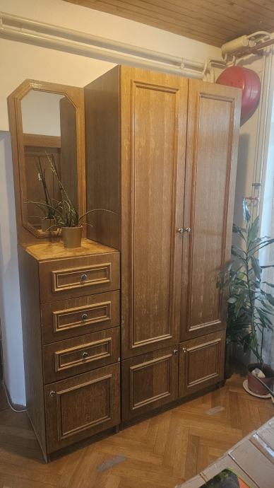 Prodajem ormar za hodnik (visina 220cm, širina 91cm, dubina 52cm) i komodu s ladicama i ogledalom (120x48x52). Cijena za oba ormara je 50 eura.