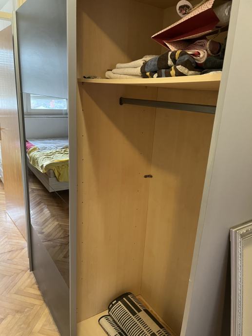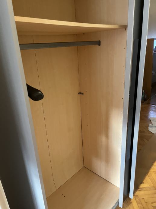 Prodaje se očuvan ormar sivo crni sa dekorativim staklom .na svakoj strani ima po jednu policu i ostalo je za vješanje .Ormar se treba preuzeti u Buzetu ,i sastavljen je ( kao na slici ).