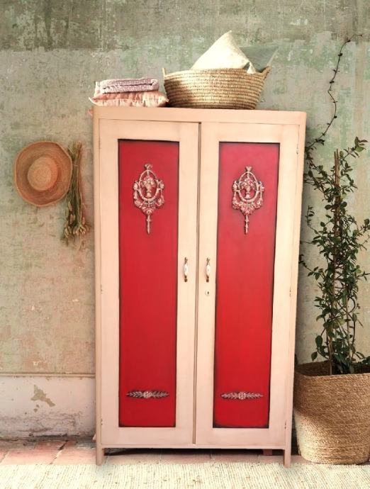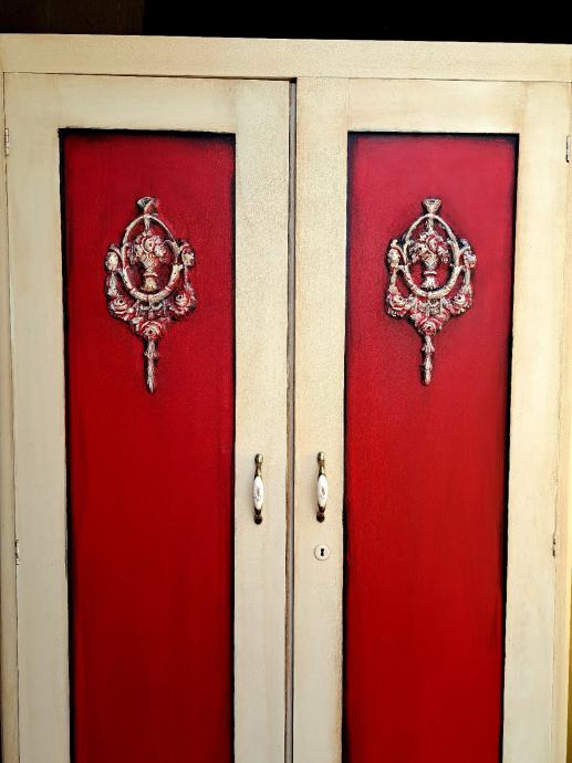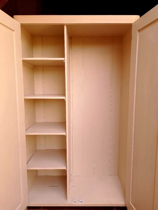 Prekrasni ormar u boji bijele kave sa starinskom patinom.